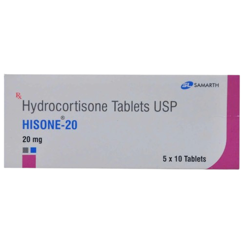 Hisone 20mg Tablet belongs to a group of medicines called corticosteroids. It is used to treat a variety of diseases and conditions such as severe allergic reactions, allergic conditions, cancer, and skin and eye disorders.